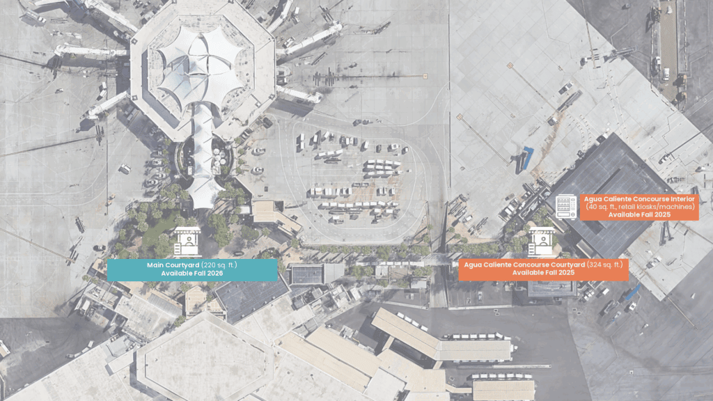 - Agua Caliente Concourse Interior (40 sq. ft., retail kiosks/machines) – Available Fall 2025